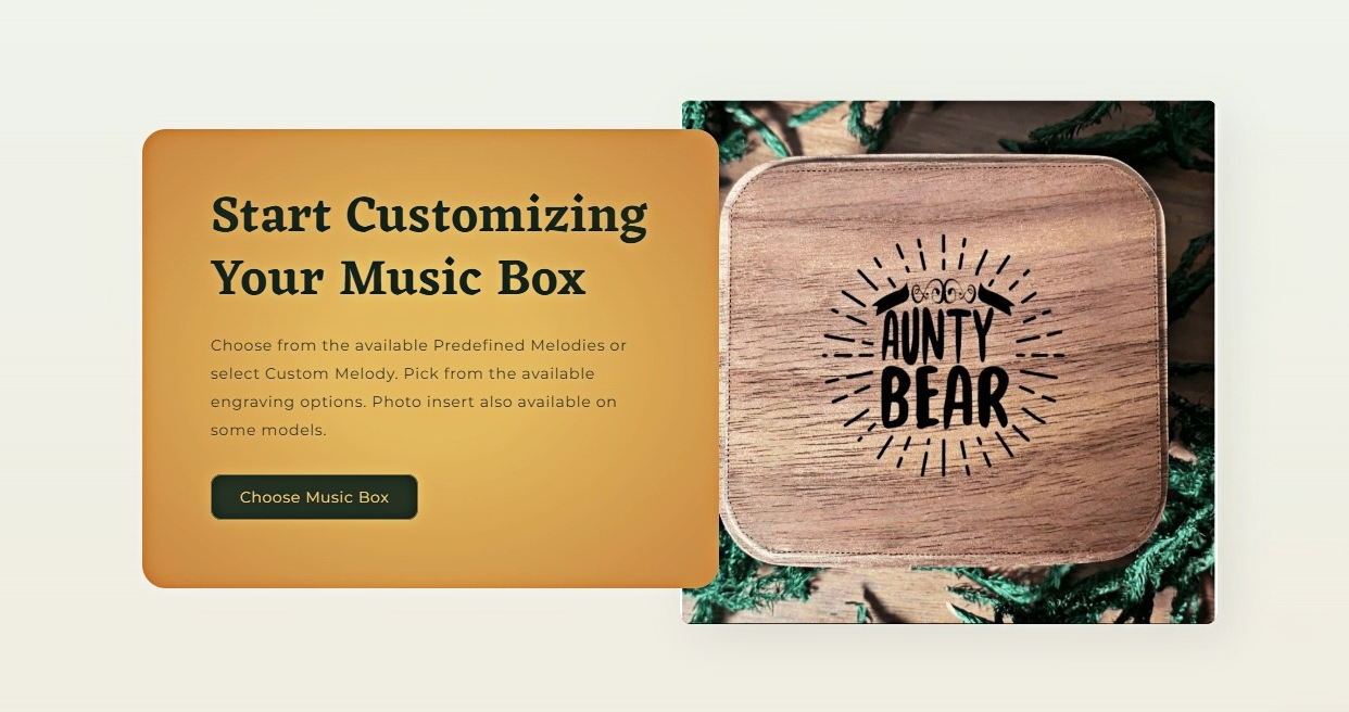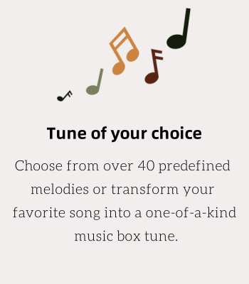 With both upgrades, it’s possible to receive your Custom Melody Music Box in as little as one month.