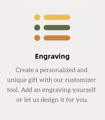 Engraving – Choose a simple text engraving with your preferred font, request a fully custom design, or pick from our ready-made templates.